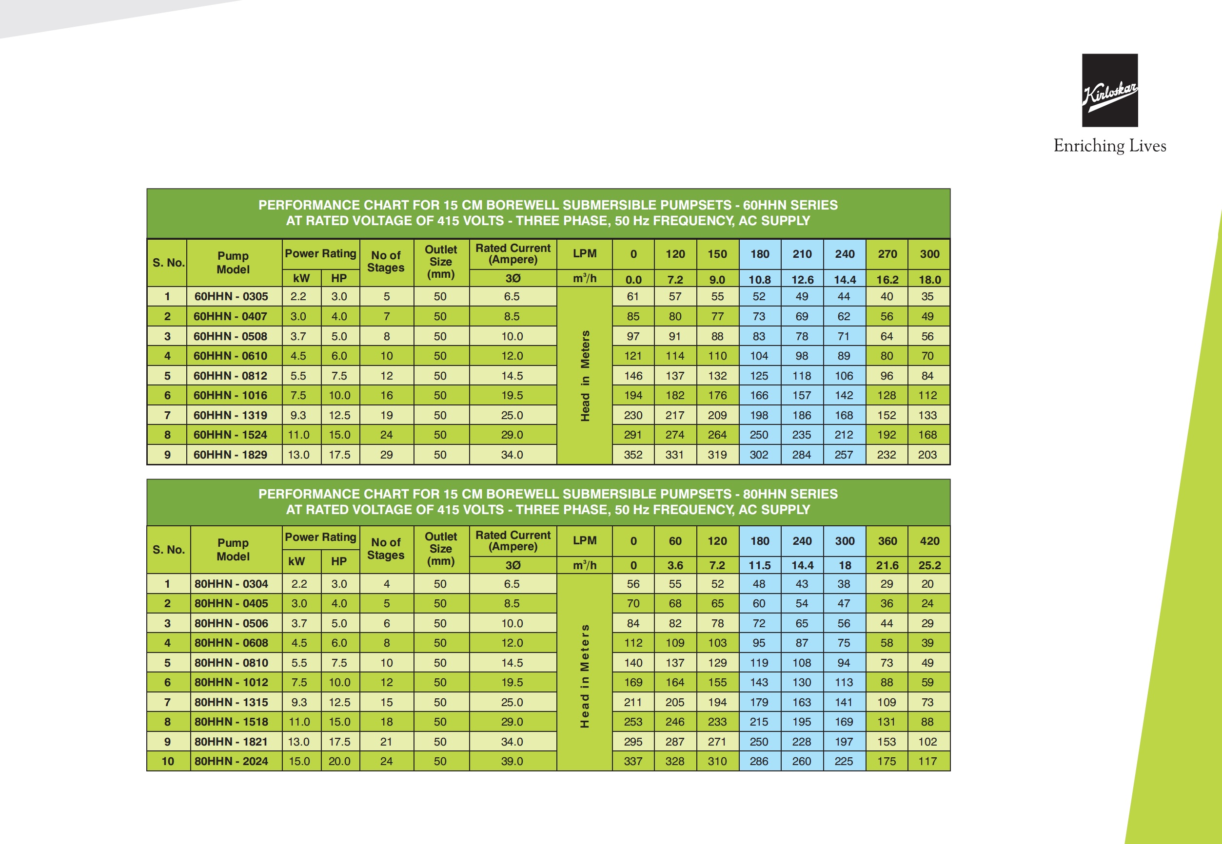 High Head Borewell Submersible Pump, 100HHF/HHN | Three Phase | 415 Volts.