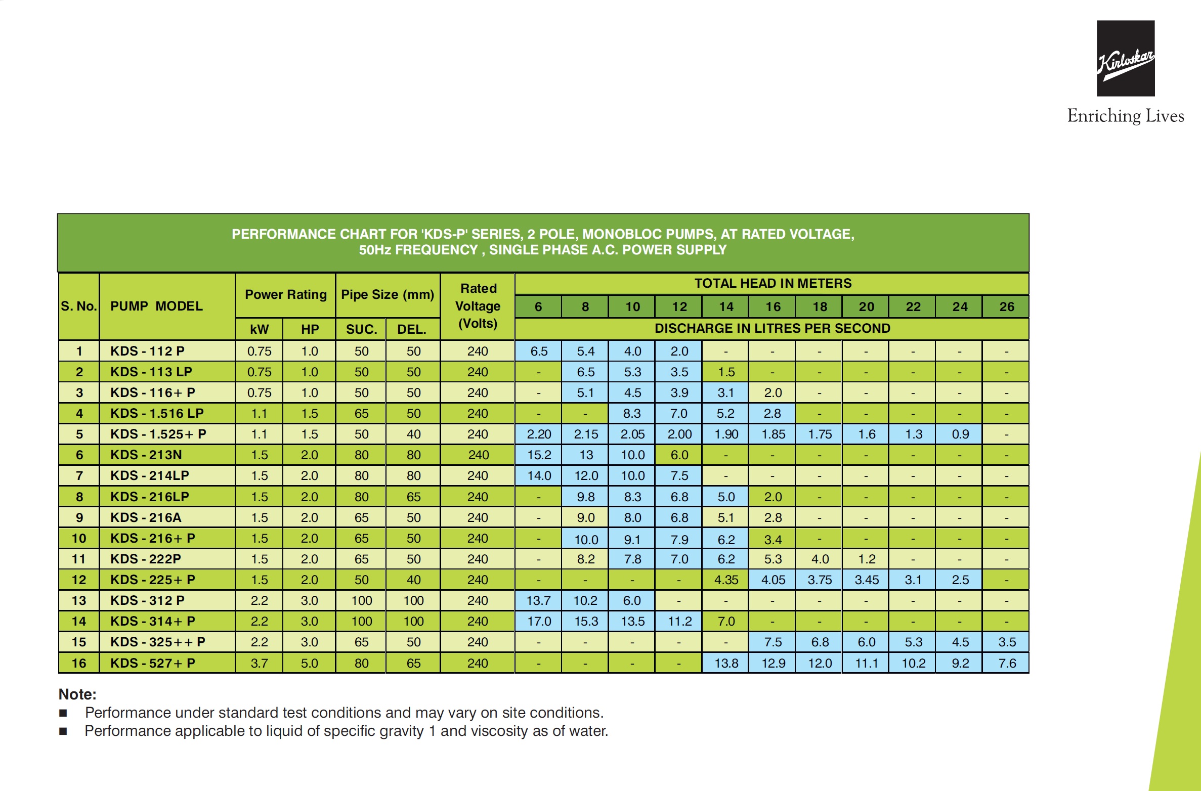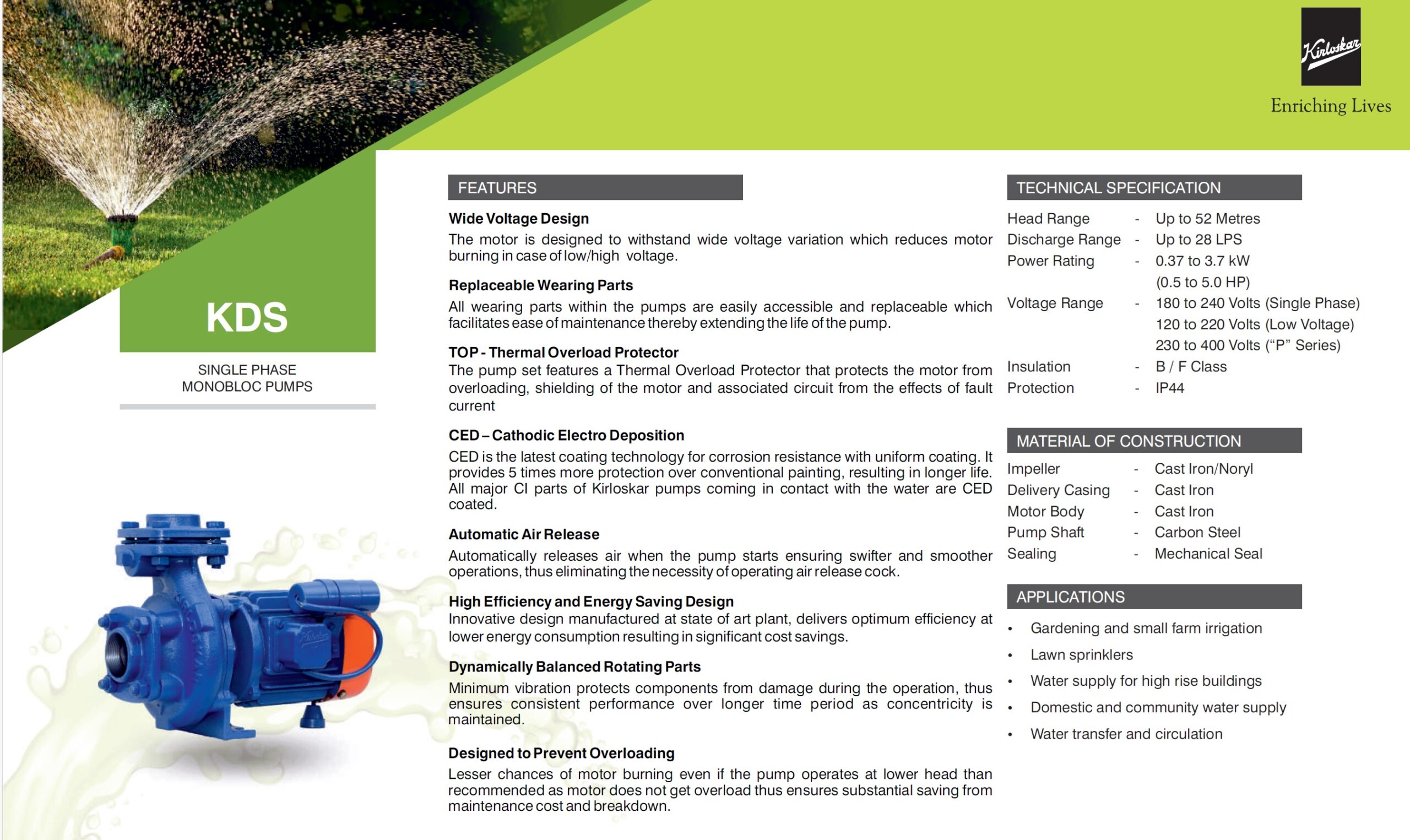 Monobloc Pump, KDS , Single Phase, 210 Volts,