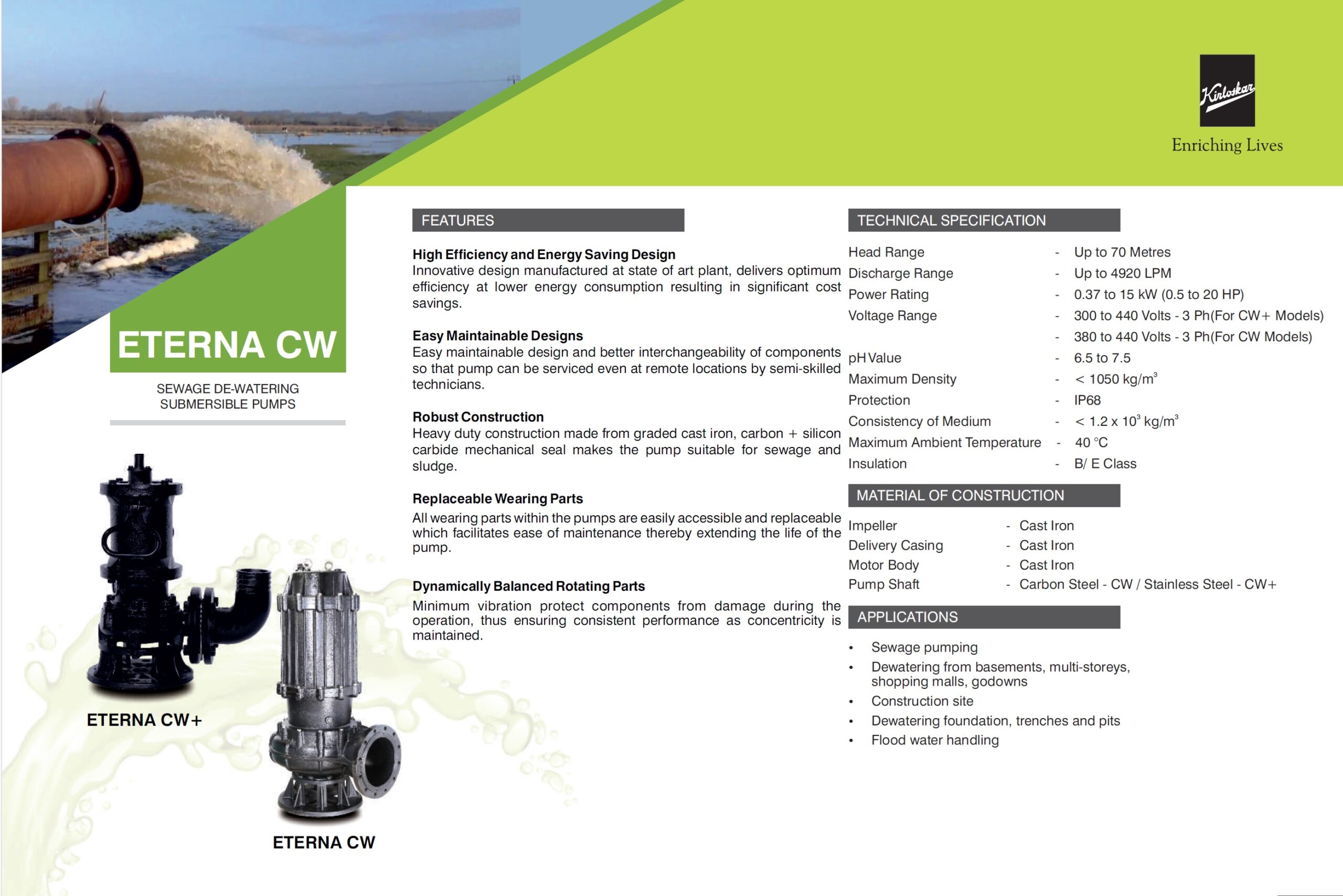 Sewage De-Watering Submersible Pumps | Eterna CW & CW+