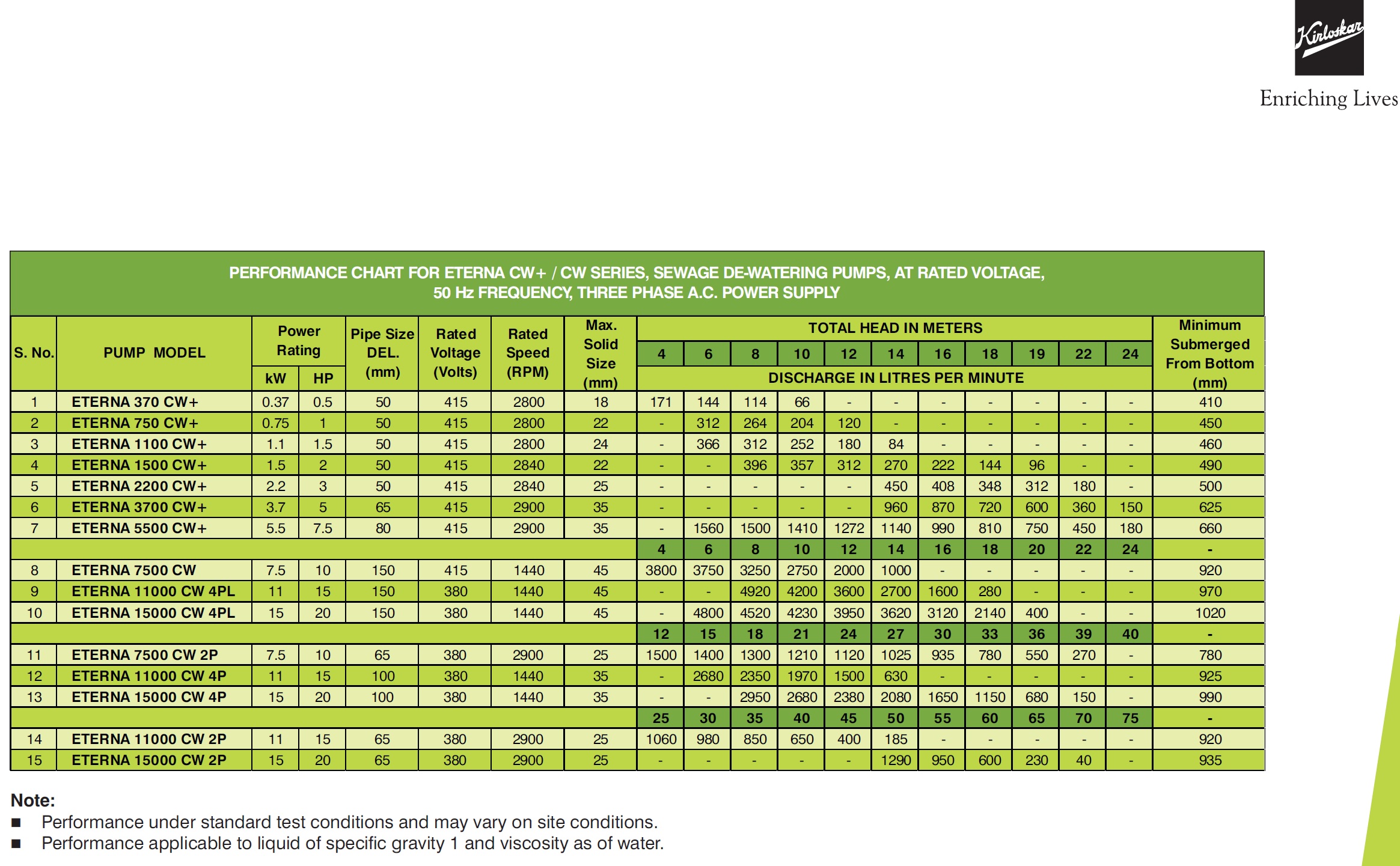 De-watering (Sewage) Pump |  ETERNA  CW | Three Phase | 415 Volts.